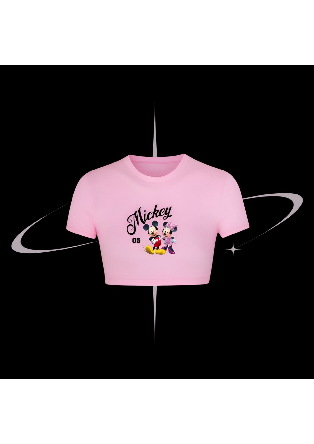 Brighten your fit with the Mickey Crop Tee in peach. This 200 GSM cotton piece features a playful screen-printed Mickey and Minnie design — soft, fun, and iconic.