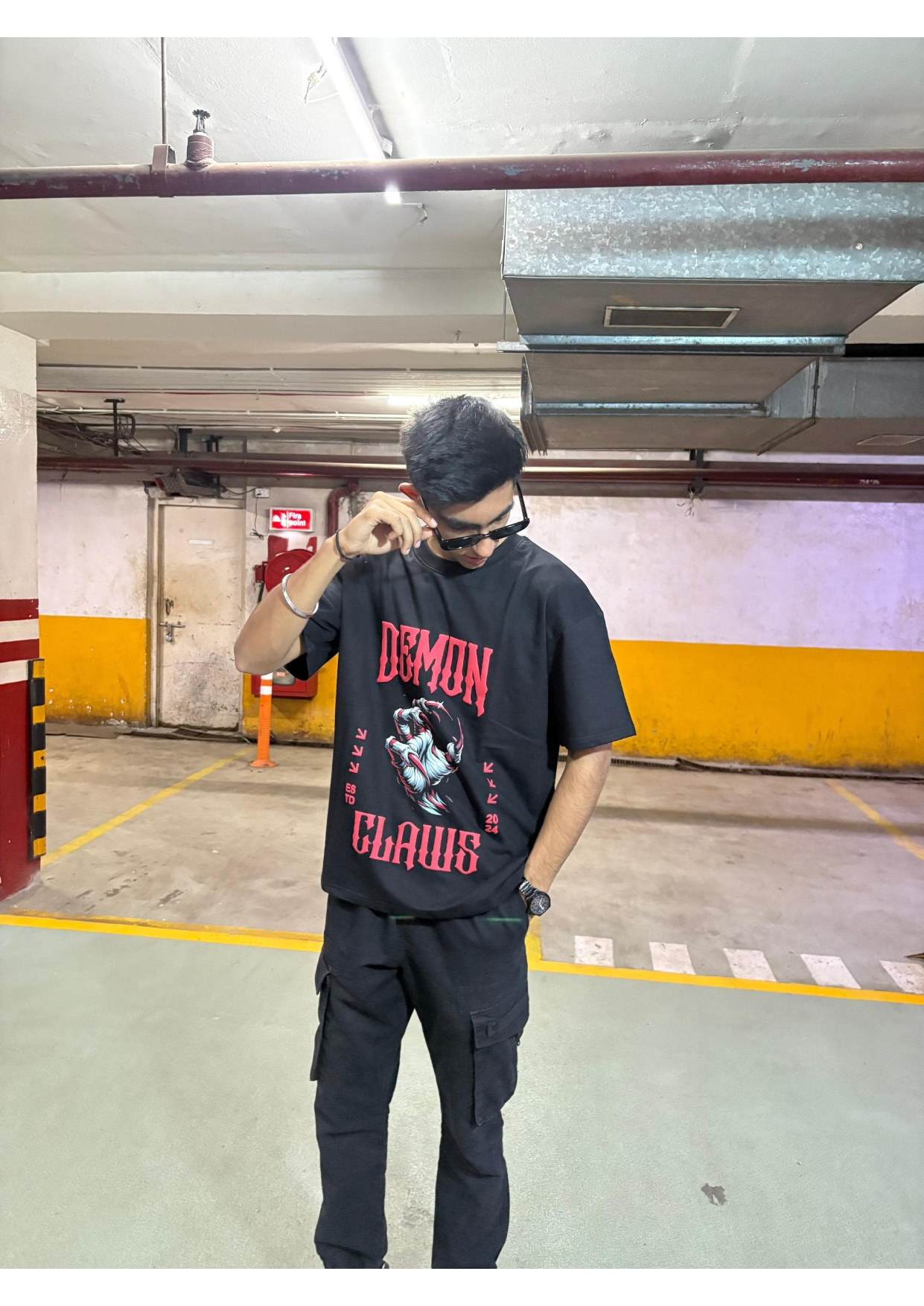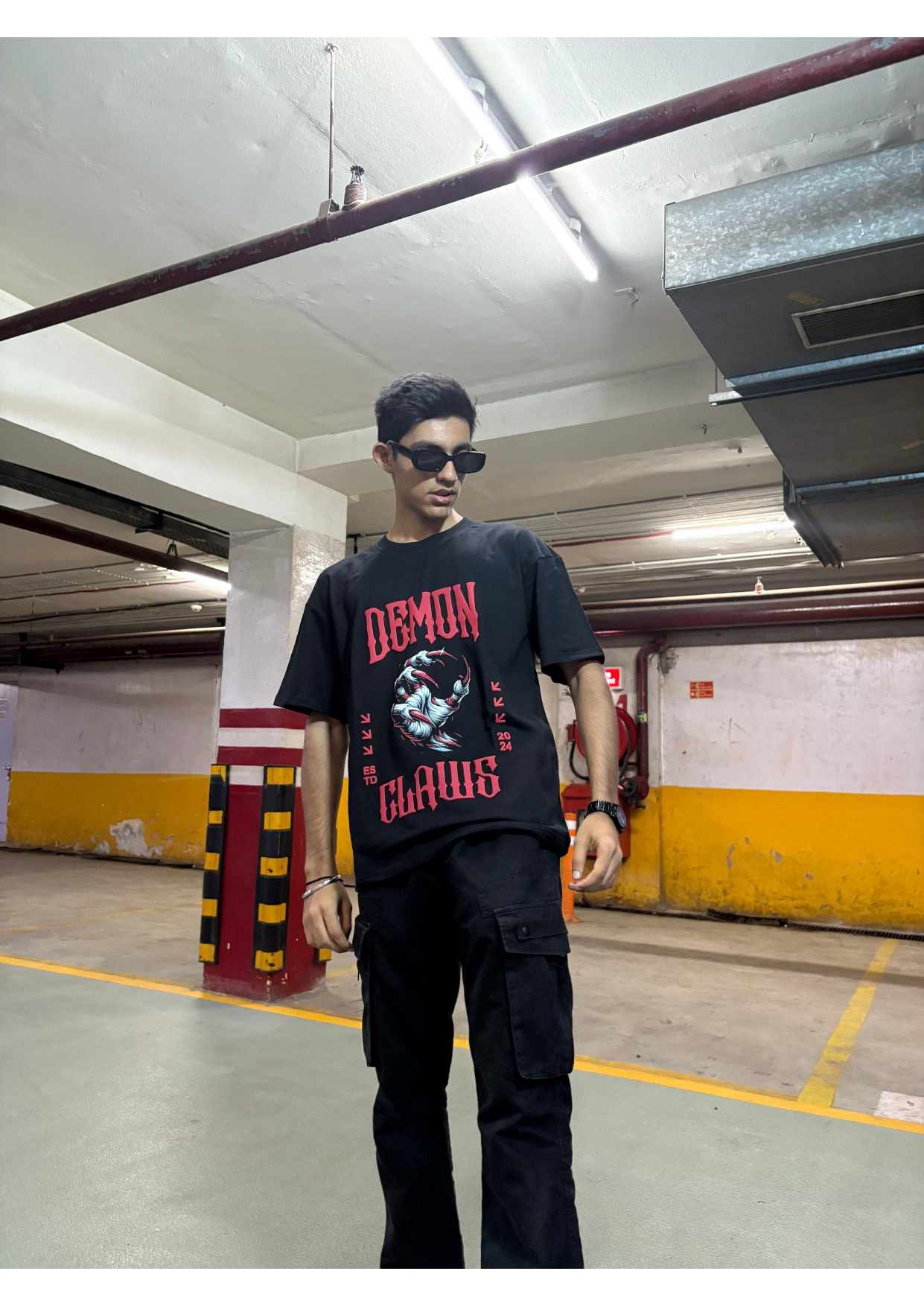 For the dark souls — the jet black 240 GSM bio-wash tee flexes a fierce claw graphic in vivid DTF print. Grunge meets power, built for the bold who bite back.
